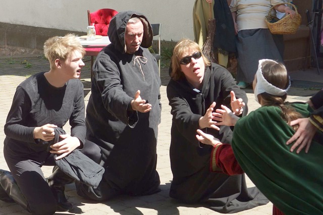 Über Zäune klettern, im Flur rumschreien, durch Türen sprechen, so tun, als ob wir Zäune streichen, wortlos sprechen, schlecht singen, Mädchen erschrecken und natürlich den Theatertext lesen und spielen.